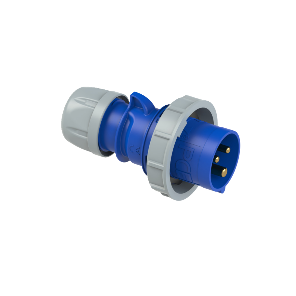 Ficha Industrial macho Tensión nominal: 250 V Cantidad de Salida: 2+T Contacto: Latón Material: PA6 Corriente: 32 A Posición: 6h Grado de Protección: IP 67 Color: Azul.