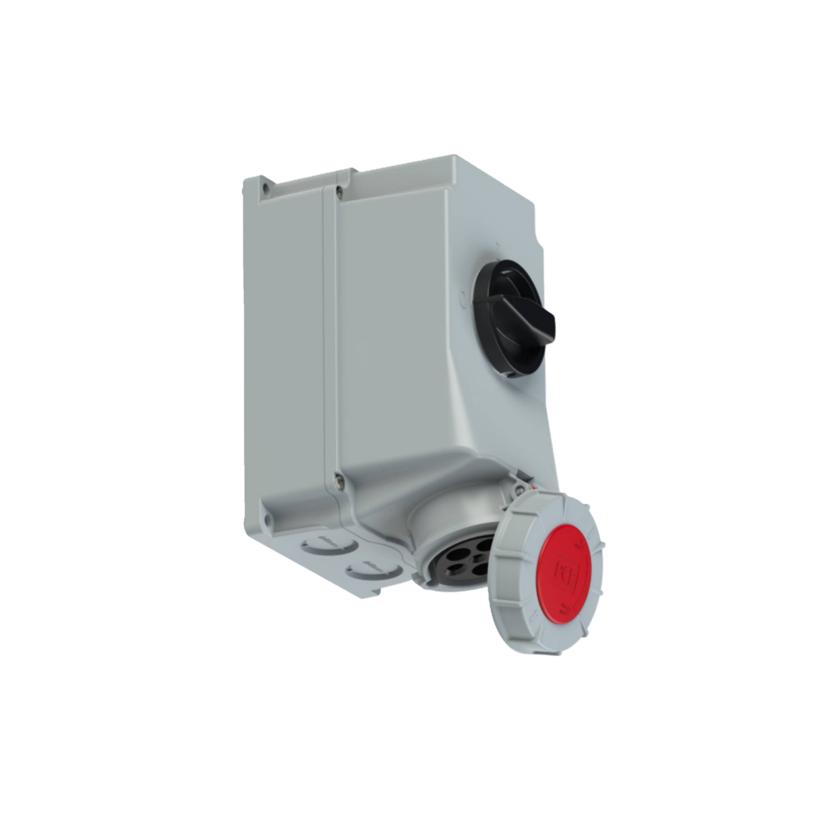 Toma Industrial de seguridad con interbloque mecánico Tensión nominal: 415 V Cantidad de Salida: 3+T Contacto: Niquelado Material: PC/ABS Corriente: 32 A Posición: 6h Grado de Protección: IP 67 Color: Rojo