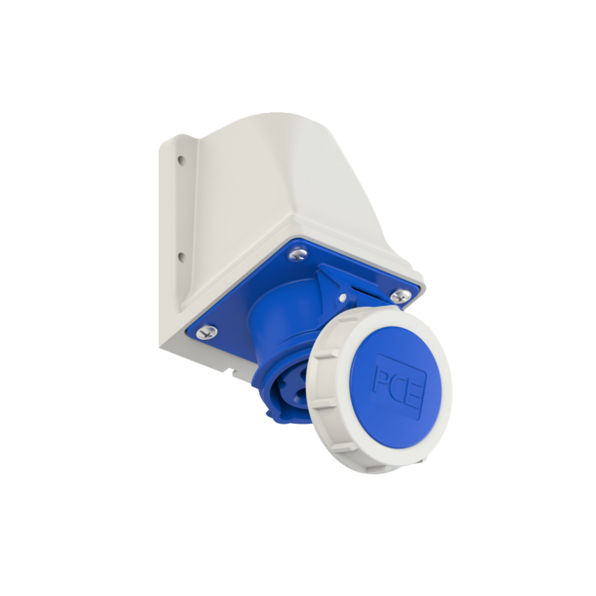 Toma Industrial Externa Hembra con tapa Tensión nominal: 250 V Cantidad de Salida: 2+T Contacto: Latón Material: PA6 Corriente: 16 A Posición: 6h Grado de Protección: IP 67 Color: Azul.